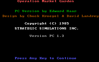 In the words of wargame veteran M. Evan Brooks, this is "a tactical/operational simulation of the largest Airborne operation of World War II, this game suffered from graphic sensory deprivation -- determining the road network was a lesson in frustration. Also, input could not be readjusted in mid-play, and overall, the user interface was both clumsy and unforgiving."