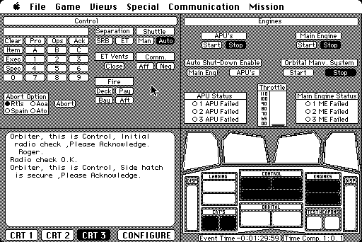 Houston, we have a problem. This orbiter and the one created by Dr. Martin Schweiger in 2000 and now at ver.2016 and this one by spectrum holobyte are not the same this is easy to play compared with orbiter 2016 which is a fantastic free space simulator probably thousands of add-ons everything from satellite launches nasa Apollo missions space shuttle missions mir .iss space station and more lots lots more my favourite takes you right back to 16 July 1969 Apollo 11 from launch to moon landing with all the add-on dialogue of the count down and astronauts talking to Houston. Never get tired of the moon landing part with the dialogue we've all heard so many times Houston tranquility base here.....the eagle has landed Fantastic.....oh yeh this games ok too. is SPACE really the final frontier ❓