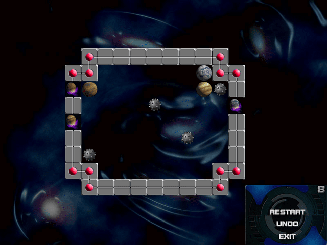 Here is the video game “OrbitZ”! Released in 2004 on Windows, it's still available and playable with some tinkering. It's a puzzle game, set in a spacecraft theme.