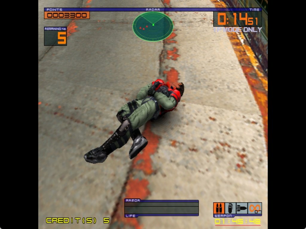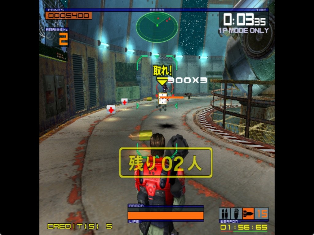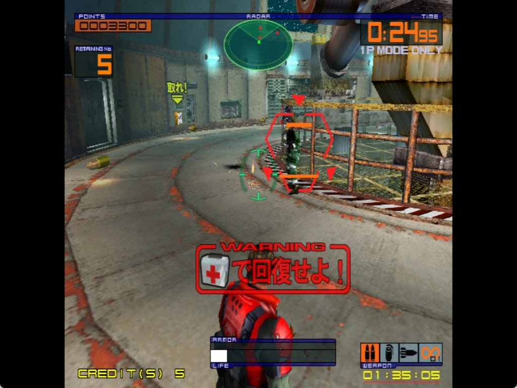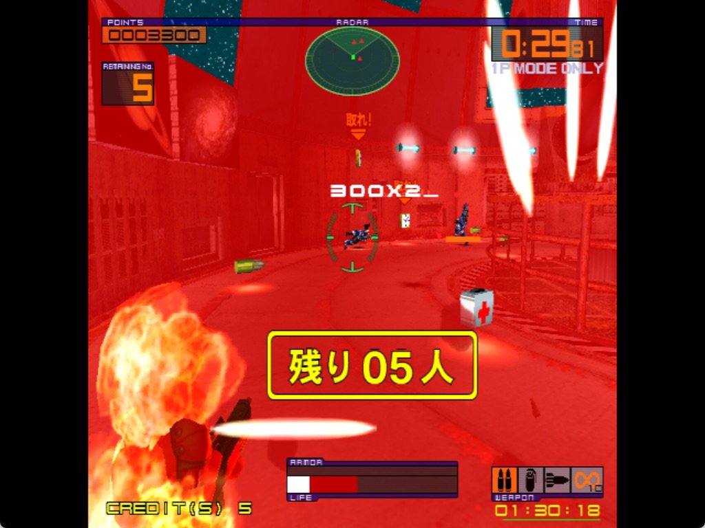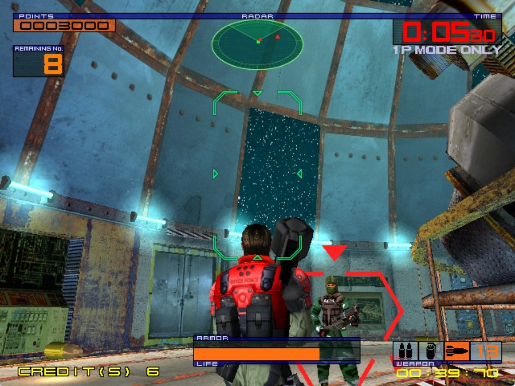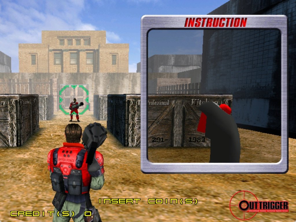 Here is the video game “Outtrigger”! Released in 1999 on Arcade, it's still available and playable with some tinkering. It's an action game, set in an arcade and shooter themes.
