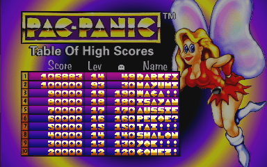Pac-Attack (aka パックパニック, Pac-Panic) is a video game published in 1993 on Genesis by Namco Limited, Namco Hometek Inc.. It's a puzzle game, set in a falling block puzzle theme, and was also released on CD-i and Game Gear.