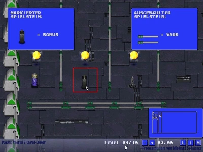 Here is the video game “Packs World 2”! Released in 2003 on Windows, it's still available and playable with some tinkering. It's an action game, set in an arcade theme.