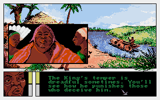 Gameplay is limited to only choosing the decision of either Isa or Hoel when their "thoughts" appear on the screen. Although the game is very non-linear, this gives a good illusion of freedom as different choices may lead to different outcome (although they all converge sooner or later). In this sense, Passengers on the Wind games are more akin to Infocom's Infocomic titles than a "game," but at least the involving storyline will hold your interest to the end.