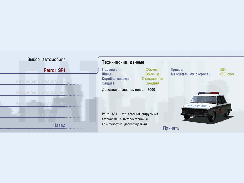 Patrol (aka Беспощадный патруль, Патруль) is a video game published in 2009 on Windows by Akella, Glassfish Games. It's an action and racing / driving game, set in an arcade and law enforcement themes.