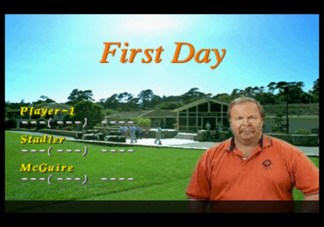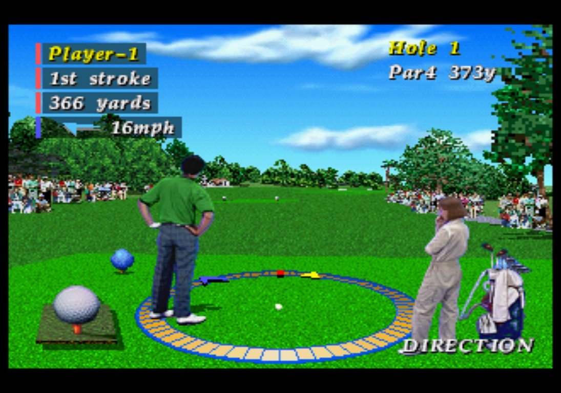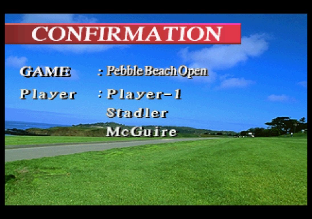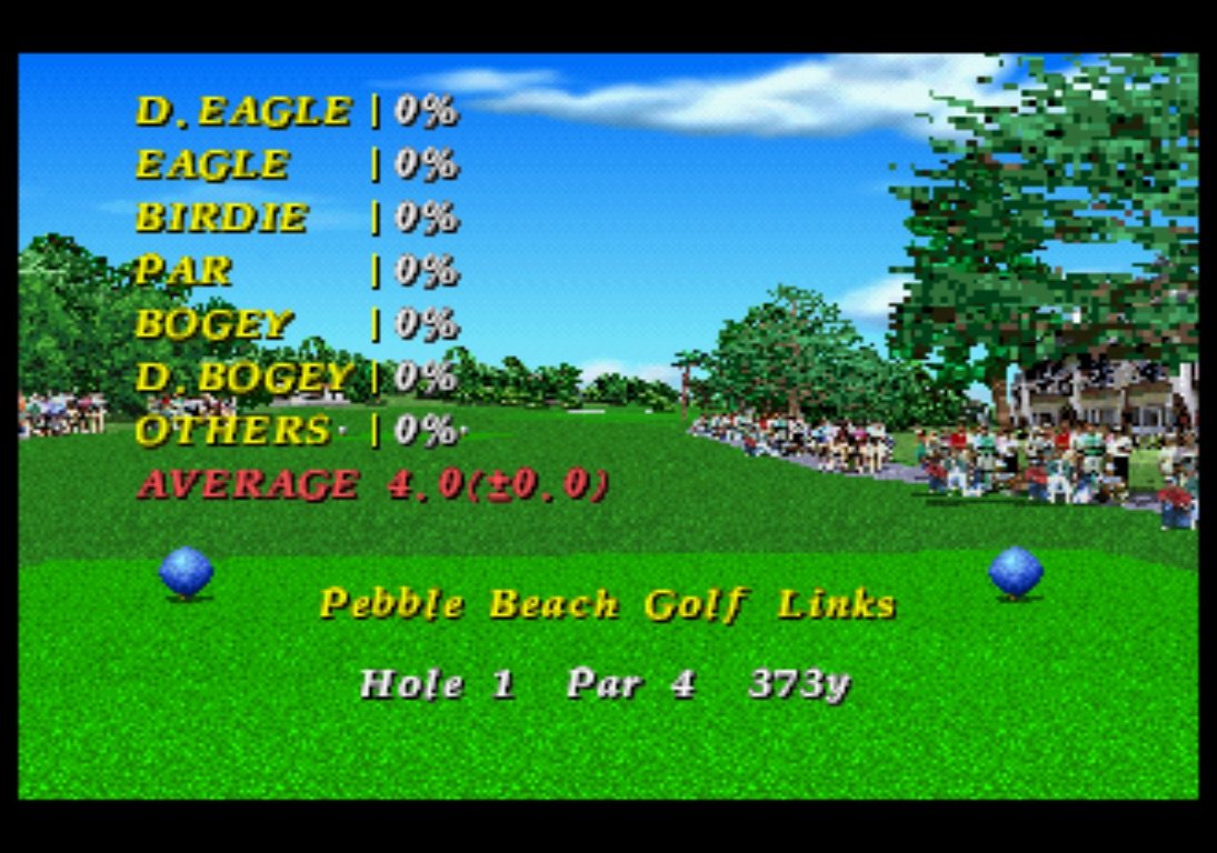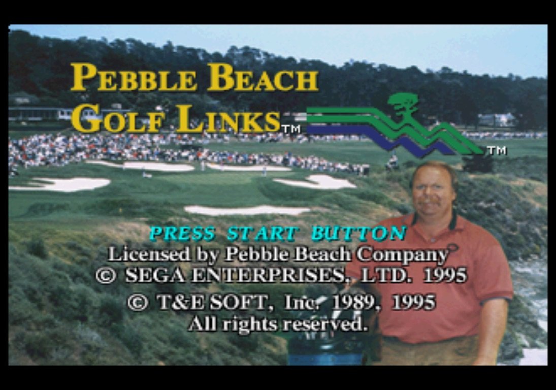 Here is the video game “Pebble Beach Golf Links”! Released in 1995 on SEGA Saturn, it's still available and playable with some tinkering. It's a sports game, set in a golf theme and it was released on 3DO as well.