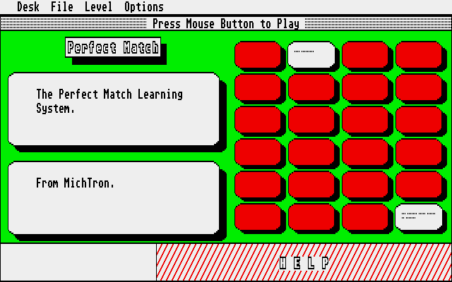 In 1987, MichTron Corp., MicroDeal Ltd. publishes Perfect Match on Atari ST. This educational game is now abandonware and is set in a cards theme.