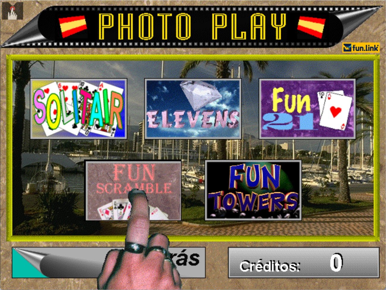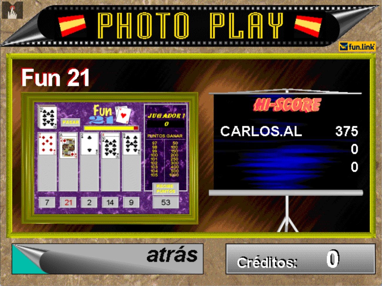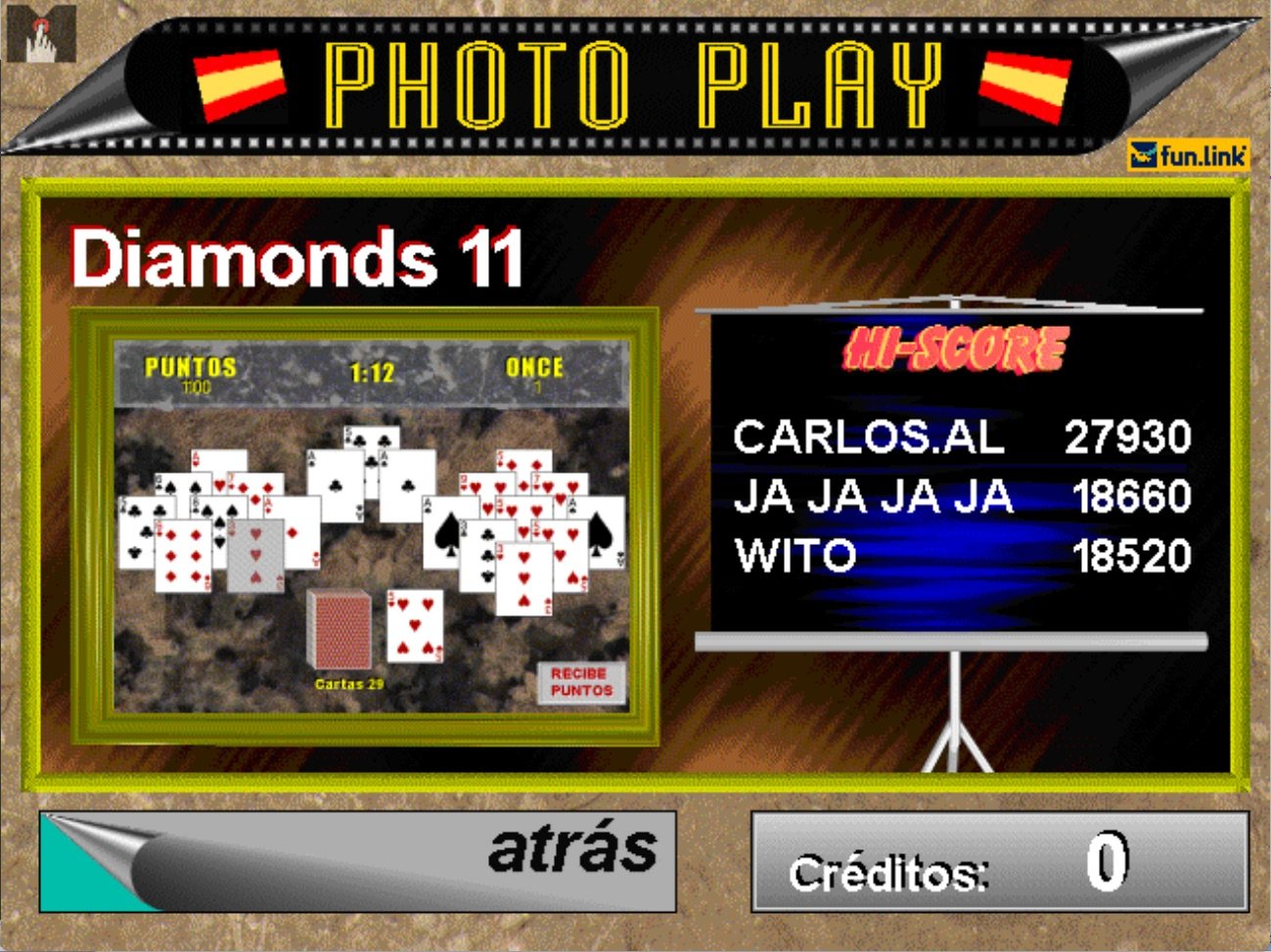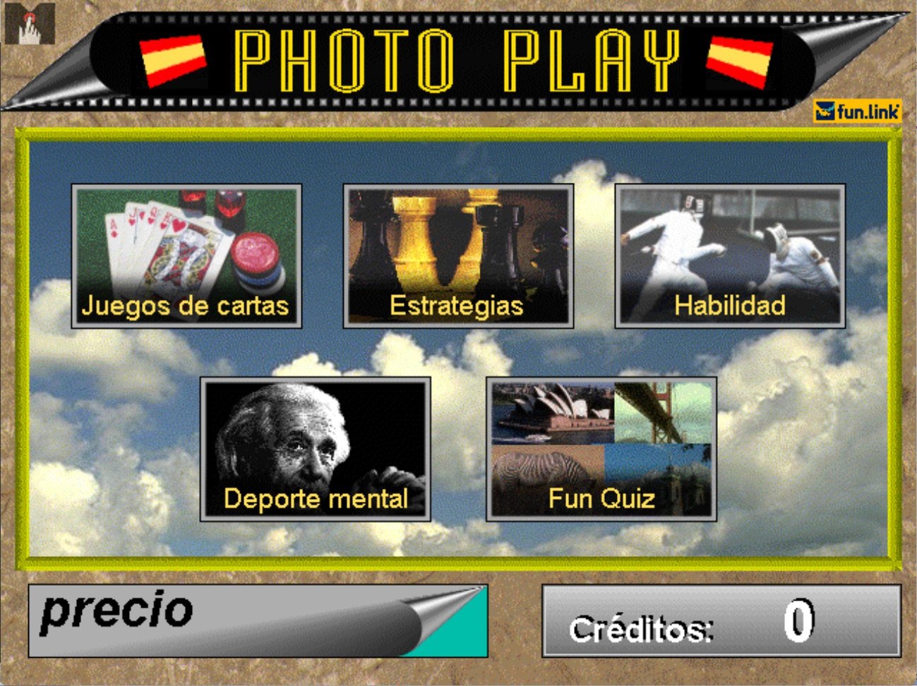 Here is the video game “Photo Play 2000”! Released in 1996 on Arcade, it's still available and playable with some tinkering. It's an action, strategy and puzzle game, set in an arcade, cards, game show / trivia / quiz and hidden object themes.
