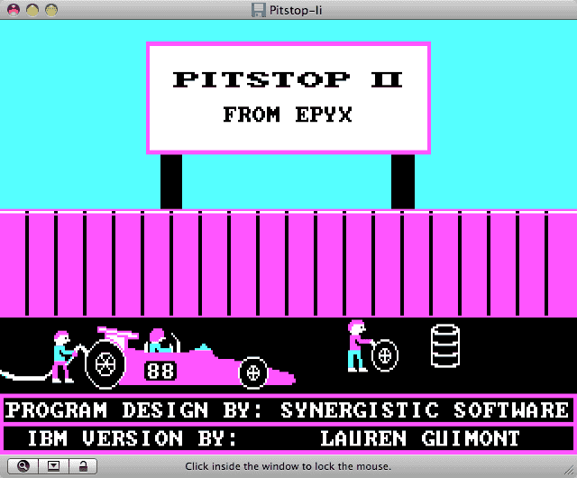 Albeit its primitive graphics and gameplay, Pitstop 2 does give a nod to realism: it is necessary to drive into a pitstop to swap out burnt tires and refuel as you race along the track. The graphics really hasn't stood the test of time that well, unfortunately.