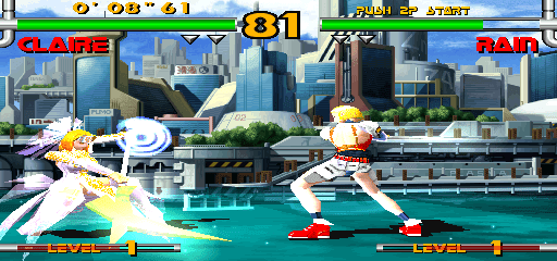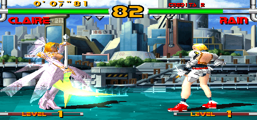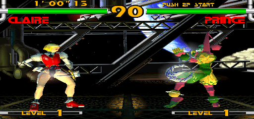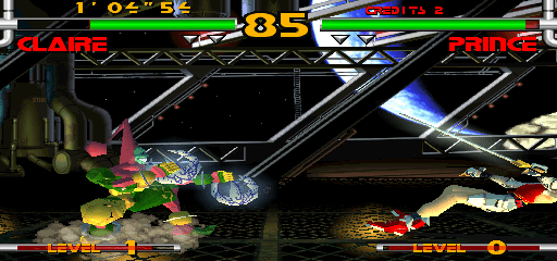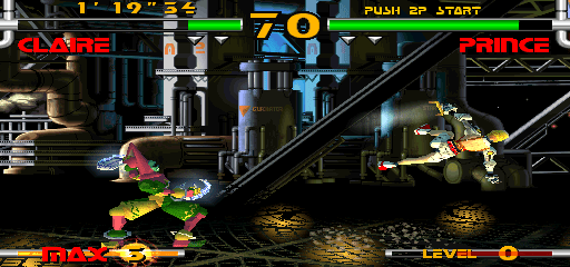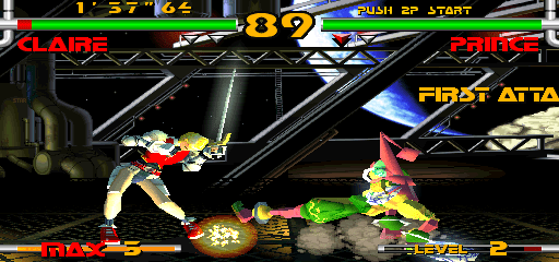 Here is the video game “Plasma Sword: Nightmare of Bilstein”! Released in 1998 on Arcade, it's still available and playable with some tinkering. It's an action game, set in a fighting and sci-fi / futuristic themes.