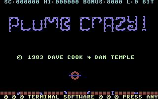 In 1984, Terminal Software publishes Plumb Crazy! on Commodore 64. This action game is now abandonware and is set in an arcade theme.