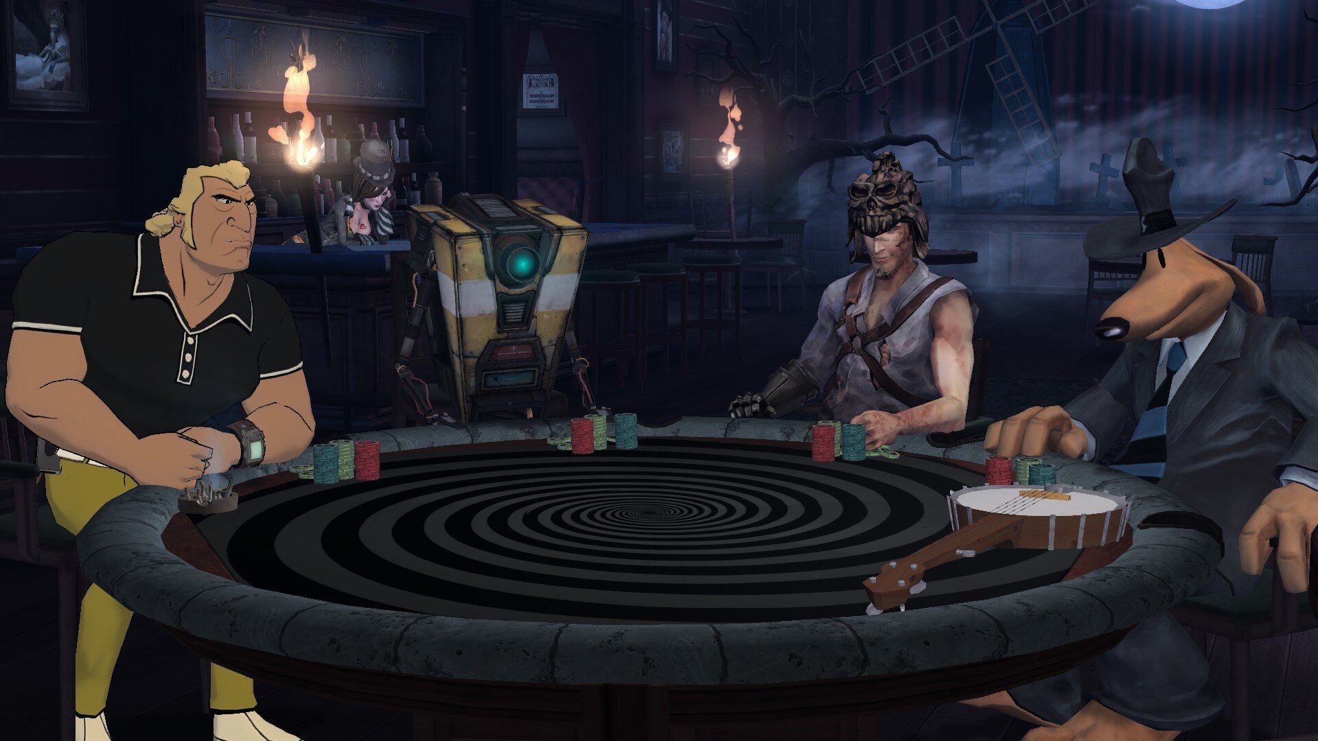 Documents/Telltale Games/Poker Night 2folder (file name is pnati2.save); if you have Steam version and don't see savegame files in yourDocumentsfolder, savegame files might be located inSteam/steamapps/compatdata/234710/pfxfolder - The game has support of high and wide screen resolutions up to Ultra HD 4K. But by default the game natively supports only the 16:9 screen ratio, if you play on any other screen ratios you will see the black bars on the sides. If you want to play on ultra-wide display or multi-monitor setup, you will need to use CheatEngine tool to hack the game files to get the correct HOR+ and get rid of black bars, check WSGF page for instructions