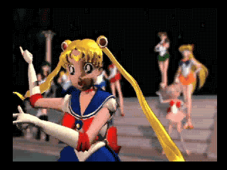 This game is a fighting, featuring nine Sailor senshi (Sailor Saturn is not present) and based off Sailor Moon S season. It uses all powerful capabilities of 3DO and features beautiful graphics and animation. Each senshi has a set of special attacks. Virtual camera is zooming during battle, approaching the fighters and retreating from them. Opening intro combines sprite and 3D animation. By selecting the bottommost option (in the main menu) you can read personal information about Sailor senshi.