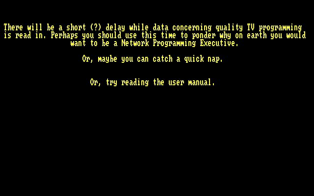 The joke at the time was that the ratings AI was based on the same flip-a-coin system the AC Nielsen company used to determine if a show was a hit or not. Still, if you want a fairly fun look at the way TV used to work when there were only three real networks, one educational joke, a fourth network trying to get off the ground, and a mexican-language network that nobody watched unless that bumblebee man was on, then this game is good for about 10 minutes of laughs. If you can get it to work on a tablet PC, you've got something to occupy you in the bathroom as well.