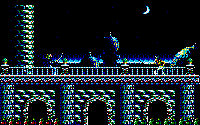 Prince of Persia 1990 is extremely good. Excellent arabic music, I was even recording the notes myself for it, excellent sound design, excellent animations, well-designed levels with secret paths and beautiful graphics creates a sense of mystery and magic and it was the best that you could get in 1990. Top-notch. This game was clearly made by professional game designers. What an absolutely beautiful game. And the second Prince of Persia 1993 is even better.