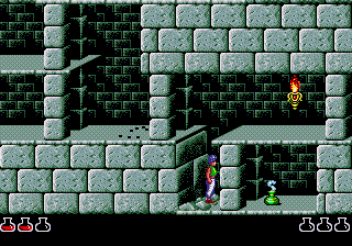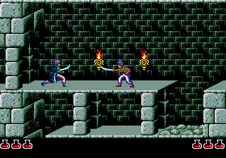 A side scrolling action game, gameplay consists of navigating Jaffar's dungeons and later his tower by running, climbing and avoiding traps (along with Jaffar's guards). As the game progresses, the Prince will also be hindered by his own doppelganger, conjured up by Jaffar to thwart him.