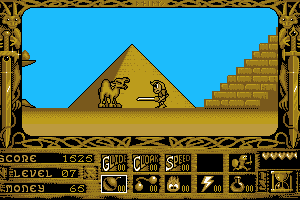 Good Wonderboy inspired game with own made graphic style. There are more animations than Wonderboy, even the enemies when they are hit, and I appreciated the animated eye on the pyramid's wall. I liked the stun handicap when the character fell from high places, it looks more a feature than a defect.