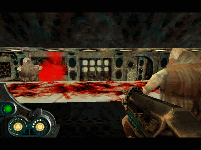 I remember that game, they called it "Polish Quake" but that was... quite misleading, to put it mildly. For some reasons single fire bullet do more damage than burst fire at point blank in the face. Yes, you can hit them in the head but in some versions scope cause massive frame drops in the game. Good luck finding code in the final level without (video)guide. And nice music too!
