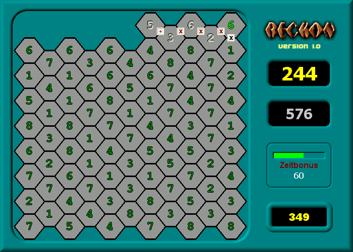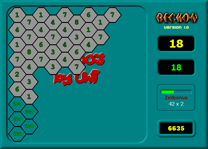 2003, the year Reckon was released on Windows. Made and self published by Uwe Härtel, this puzzle game is available for free on this page.