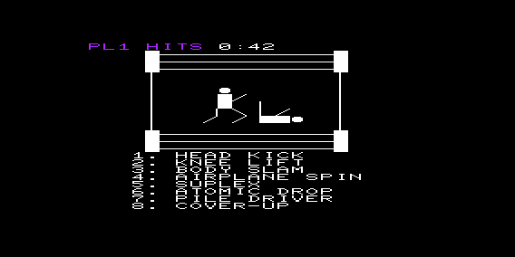 Ringside Wrestling is a video game published in 1990 on VIC-20 by System Four. It's an action game. One of those obscure title!