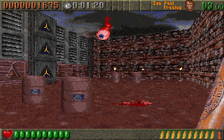 Ahaha... A pretty good game back in the day. Yeah it didn't have quite the finesse of Doom, and instead of weapon selection there was just about 6 different rocket launchers, ahaha.. But I used to play some modem-to-modem games every once in a while for kicks. Not bad.