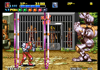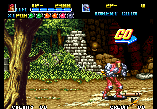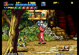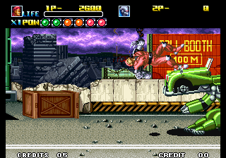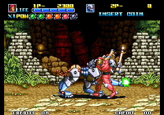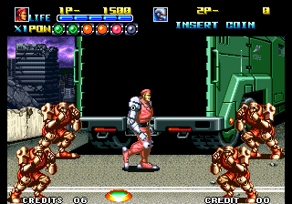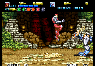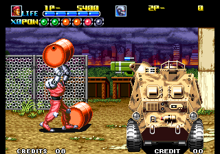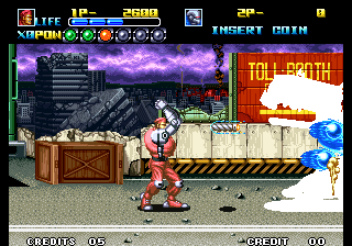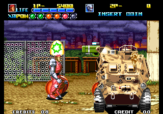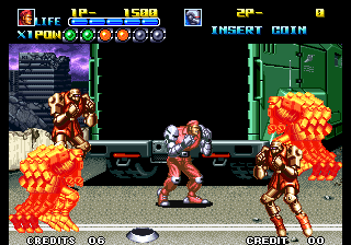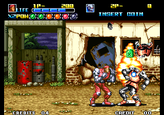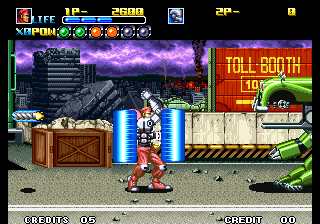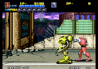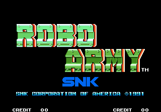Robo Army (aka アケアカNEOGEO ロボアーミー, ロボ・アーミー) is a video game published in 1991 on Neo Geo by SNK Corporation. It's an action game, set in a sci-fi / futuristic and beat 'em up / brawler themes, and was also released on Arcade and Neo Geo CD.