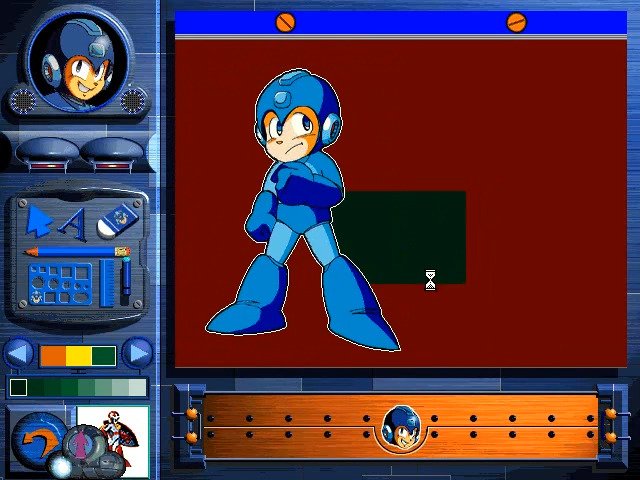 Here is the video game “Rockman IQ Whirlwind”! Released in 1998 on Windows, it's still available and playable with some tinkering. It's an educational game, set in a graphics / art and typing themes.