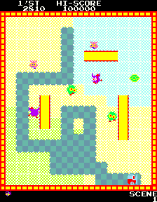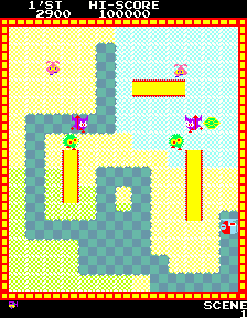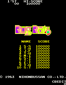 In 1983, Nichibutsu publishes Rug Rats on Arcade. This action game is now abandonware and is set in an arcade and sci-fi / futuristic themes.