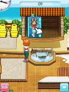 Here is the video game “Sally's Spa”! Released in 2009 on J2ME, it's still available and playable with some tinkering. It's an action game, set in a managerial and time management themes.