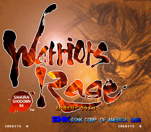 Samurai Shodown 64: Warriors Rage (aka Samurai Spirits 2 アスラ斬魔伝, Samurai Spirits 2: Asura Zanmaden) is a video game published in 1998 on Arcade by SNK Corporation. It's an action game, set in a fighting, martial arts and japan (ancient/classical/medieval) themes.