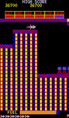 In 1981, Konami Industry Co. Ltd., SEGA Enterprises Ltd., Stern Electronics, Inc. publishes Scramble on Arcade. Also published on Vectrex, this action game is abandonware and is set in an arcade and shooter themes.