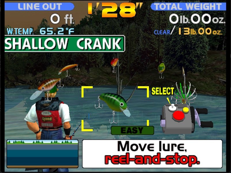 The game takes place on one of the nicest bass fishing lakes the world has to offer: Lake Paradise. Here, you will have a chance to fish in 8 different areas of the lake, all rendered in beautiful 3D graphics. You can also use up to 14 different lures, deal with various weather conditions that affect both the mood of the fish and their quantity.