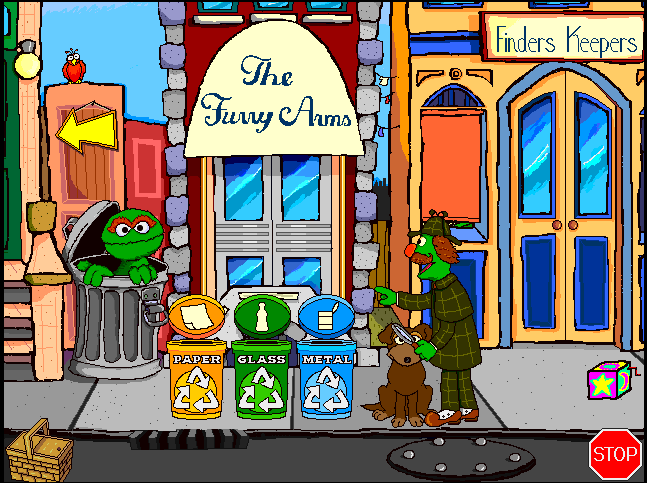 Here is the video game “Sesame Street Elmo's Preschool: Search & Learn Adventures”! Released in 1996 on Windows, it's still available and playable with some tinkering. It's an educational and puzzle game, set in a puzzle-solving theme.