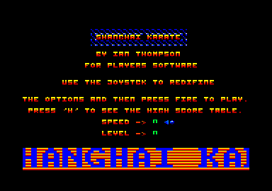 Shanghai Karate is a video game published in 1988 on ZX Spectrum by Players Software. It's an action game, set in a fighting, martial arts and versus fighting themes, and was also released on Amstrad CPC.