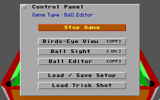 Sharkey's 3D Pool is an excellent pool game that introduces 3D perspective long before Celeris' Virtual Pool. The game is fast, easy to learn, and a lot of fun. You can play against the computers with different skills (including tournaments), another human player, or see if you can replicate trick shots performed by real pros. Traditional top-down view is available in addition to the very attractive 3D view that lets you view the action from any angle.