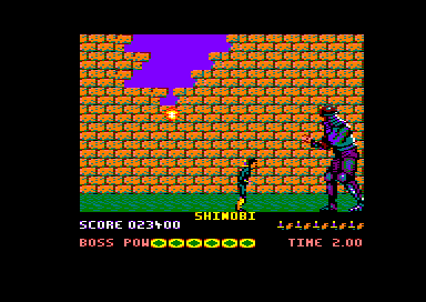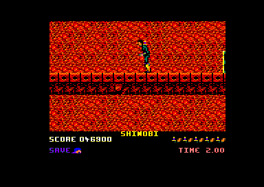 Shinobi is not a hard game, but it is not too easy either. Although the level bosses are definitely too simple to defeat, some of the later levels will require precise timing and inhuman reflexes. Overall, Shinobi isn't as varied or atmospheric as the best ninja platformers (e.g. Ninja Gaiden 2 on the consoles), but it does offer more than a few hours of fun gameplay, and the addictive and original bonus levels are well worth playing for. Thumbs up!