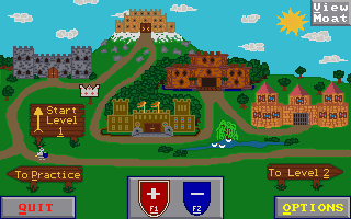 Here is the video game “Sir AddaLot's Math Adventure”! Released in 1993 on DOS, it's still available and playable with some tinkering. It's an educational game, set in a math / logic, fantasy, pre-school / toddler, real-time and puzzle elements themes.