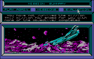 Sequel to 1984's Skyfox I that was unfortunately never released for the PC, Skyfox II is an excellent space combat shooter, with many different missions and detailed bitmap graphics that was advanced for its time. The gameplay is fast, fun, and surprisingly varied. You will pilot a starfighter on a variety of missions, from locating lost artifacts to destroying the enemy. The enemy ships, Xenomorph fighters in particular, are a far cry from dummy ships of most early shooters: they will dodge your fire, gang up on you, and are deadly accurate with their attack.