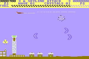 In 1984, Century Software publishes Skyline Attack on Commodore 64. This action game is now abandonware and is set in a sci-fi / futuristic and shooter themes.