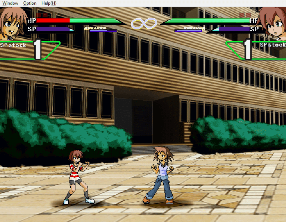 Here is the video game “Slash RE”! Released in 2004 on Windows, it's still available and playable with some tinkering. It's an action game, set in a fighting and 2d fighter maker themes.