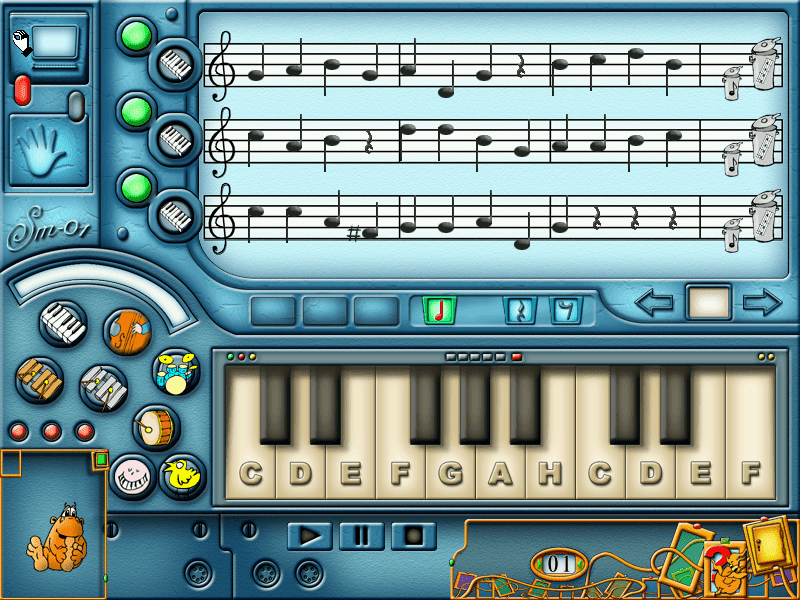 Smokule - muzyka (aka Sárkányok Országa - avagy tanuljunk zenélni!, Sárkicák - zenei kalandok, Dráčci Hudba - slož si svoje vlastní písničky) is a video game published in 2001 on Windows by Aidem Media Sp. z o.o.. It's an educational game, set in a mini-games theme.