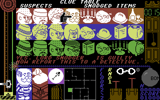 Snodgits is a video game published in 1986 on Commodore 64 by Sparklers. It's an action game, set in a detective / mystery, stealth and puzzle elements themes, and was also released on Amstrad CPC.