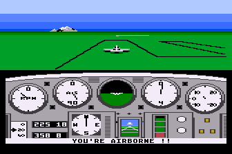 Being a civilian flight sim, this is basically what you do... you know, don't expect any shooting. So, what about the graphics then? Being an early 80's sim, don't expect much in this department. Pink landscape and cyan skies are the norm here for the PC version (The Amiga version is much, much nicer).
