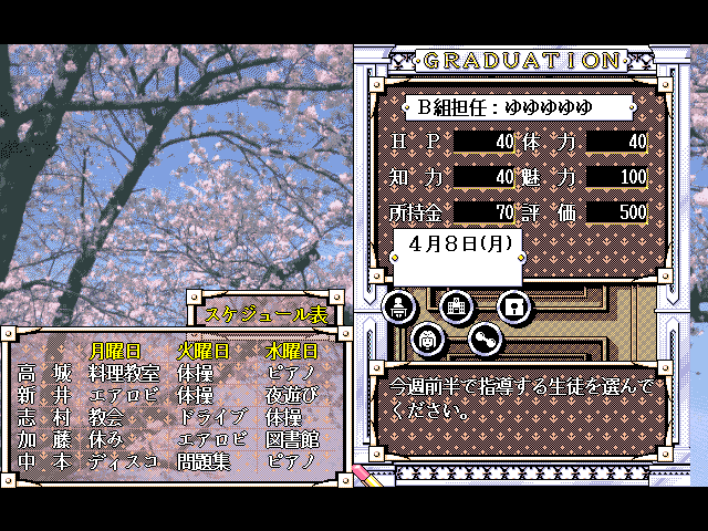 Here is the video game “Sotsugyō”! Released in 1994 on Mac, it's still available and playable with some tinkering. It's a simulation game, set in an anime / manga theme and it was released on FM Towns, PC-98, Sharp X68000, TurboGrafx CD and WonderSwan as well.