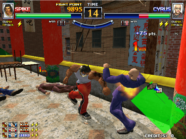 Here is the video game “Spikers Battle”! Released in 2001 on Arcade, it's still available and playable with some tinkering. It's an action game, set in a beat 'em up / brawler theme.