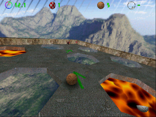 Here is the video game “Spin Off”! Released in 2004 on Windows, it's still available and playable with some tinkering. It's an action game, set in a platform and rolling ball themes.
