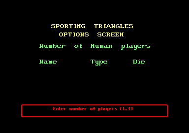 1989, the year Sporting Triangles was released on Commodore 64, as well as Amiga, Amstrad CPC, BBC Micro, Electron and ZX Spectrum. Made by Mr. Micro Ltd. and published by CDS Software Ltd, this sports game is available for free on this page.