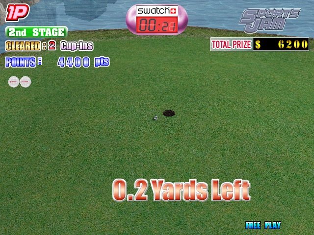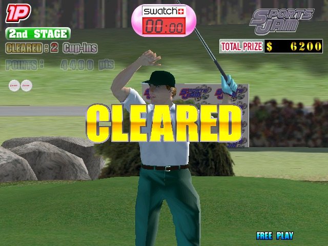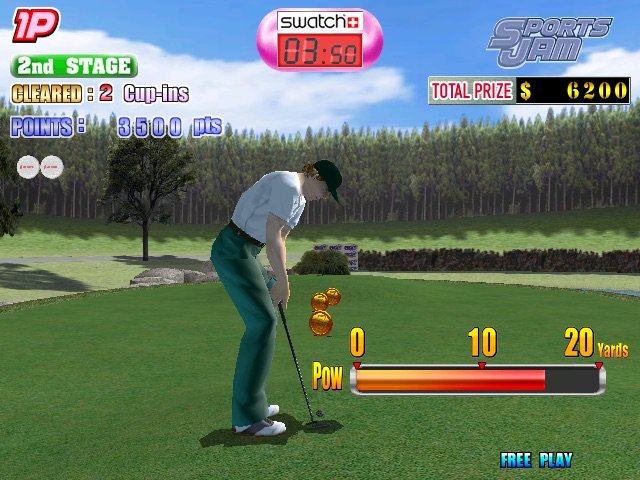 Here is the video game “Sports Jam”! Released in 2000 on Arcade, it's still available and playable with some tinkering. It's a sports game, set in a baseball, basketball, football (american), golf, hockey, soccer / football (european) and tennis themes.