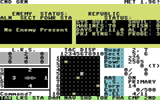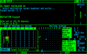No doubt the most complex space combat simulation games ever released, and one the most complex games in general, Star Fleet 1 packs an amazing amount of gameplay and realism less than 200KB of space.