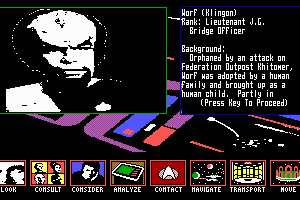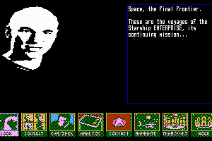 This obscure adventure game is an excellent Star Trek: TNG title that captures all the flavor of the TV series, with cool digitized animations of the cast and object. The game features the excellent "conference" and "analyze" strategic options similar to TRANS Fiction's other underdog Hidden Agenda, where you evaluate found objects and solicit opinions from crew members. As Riker, unravel the mystery surrounding a space station attack. Highly recommended.