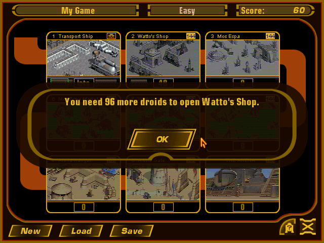 In the final analysis, I enjoyed this game. However, there are some real issues with long-term satisfaction. The game at first hit me like a brick - it was "hate at first sight". Then came the realization that there was a really good puzzle strategy game hidden underneath all the fluffy Star Wars stuff. Then it hit me that the game had a definite repetitive style of gameplay that really irked me after a while. All in all, you could say that I had a "crush" on Pit Droids that turned cooler the better I got to know it. While the game does say that it is for "ages 9+", don't think that you won't get caught up in it's easy style of play and then trapped by the incredibly hard puzzles. But Lemmings it isn't. Also, don't be afraid to stay up past your kids bedtime to "try out" that game you bought them. Just realize that they may be playing it long after you are.